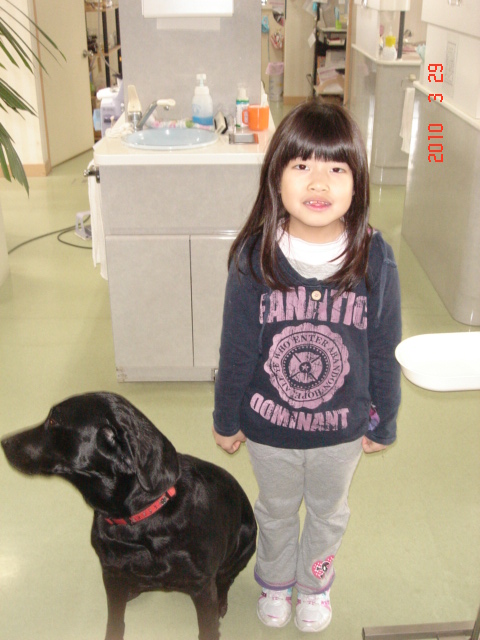 わんちゃん大好きの小原優奈ちゃん!さくらちゃんと2ショット撮っちゃいました(*^^)vでも、さくらちゃんの目線の先には・・・大好きな院長が(>_<)こっち見てぇ〜!!!(笑)