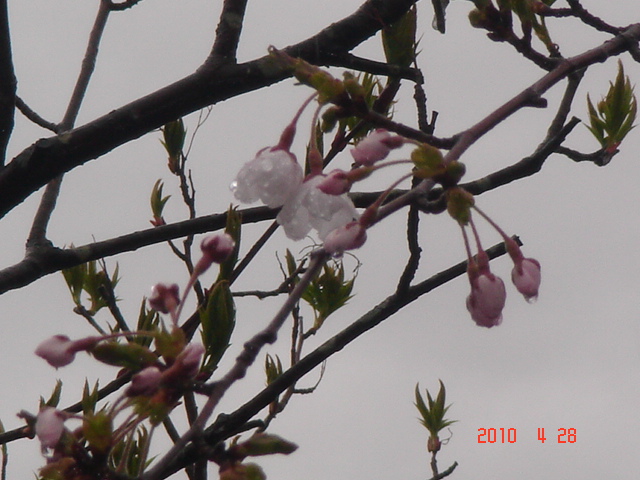 やっと咲いた桜!でも寒くて、雨! かわいそう・・・