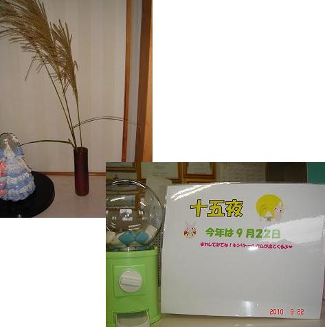 今日は十五夜ですヽ(^o^)丿ただ天気があまりよろしくないようで・・・(+_+)診療室内にもすすきを飾っています。左側に飾ってるのでぜひ見て下さいね♪ちなみに・・今日来てくれた子供たちにはガムのガチャガチャを用意しています!!何味がでるかな〜(*^_^*)??