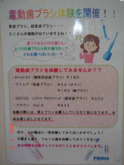 今月は電動歯ブラシ体験を開催中です♪手磨きとは違ったツルツルな感覚を試してみませんか??歯磨き面倒くさいなという方、自分では上手く動かせない方にお勧めです☆1本ブラシのようなワンタフトブラシもあるので、矯正の仕上げ磨きにもおススメなんですよ(*^^)v詳しくはスタッフまでどうぞ〜!!