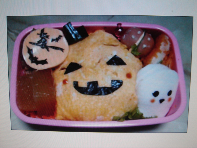 阿部さんのキャラ弁、第3弾です(*^^)v今回は2作あるようで・・♪♪まずはハロウィン\(◎o◎)/!今回は娘さんも一緒に作ったそうですよ〜★可愛いですね!!ちなみに、つのだ歯科もハロウィン仕様に飾ってます♪ハロウィンお菓子の詰め合わせも好評発売中ですよー!