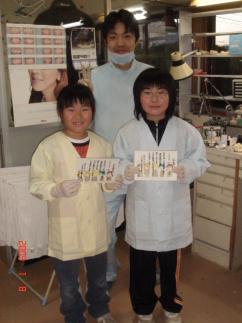 1月8日に、片山みさきちゃん&あかりちゃんが技工士体験しました!!技工士さんの仕事は普段見ることが出来ないので良い体験になったのではないでしょうか(*^^)v銀歯を作るのもスグには出来ないんですよ!つのだ歯科なりきり歯科技工士に認定!!