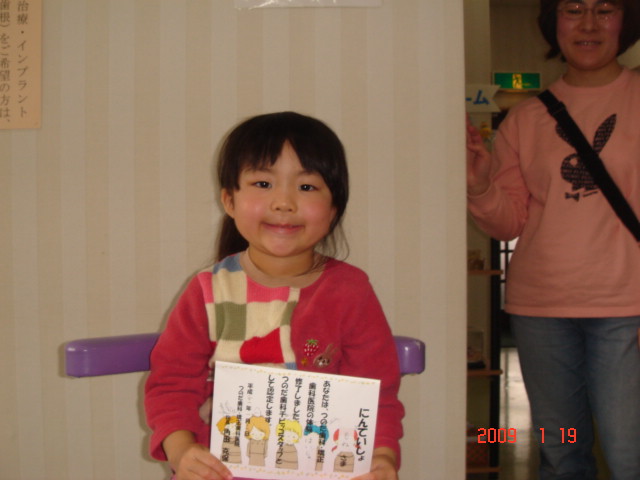 佐藤萌音ちゃんが歯医者さんのイスに座って先生気分♪♪