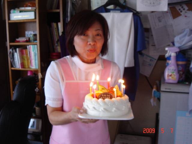 7日は中村さん(院長夫人)の誕生日!(^^)!バースデーケーキ、スタッフからの気持ちです♪中村さんは明るく笑顔でいつも元気もらってます!!ありがとうございます(*^_^*)記念写真載せま〜す★☆